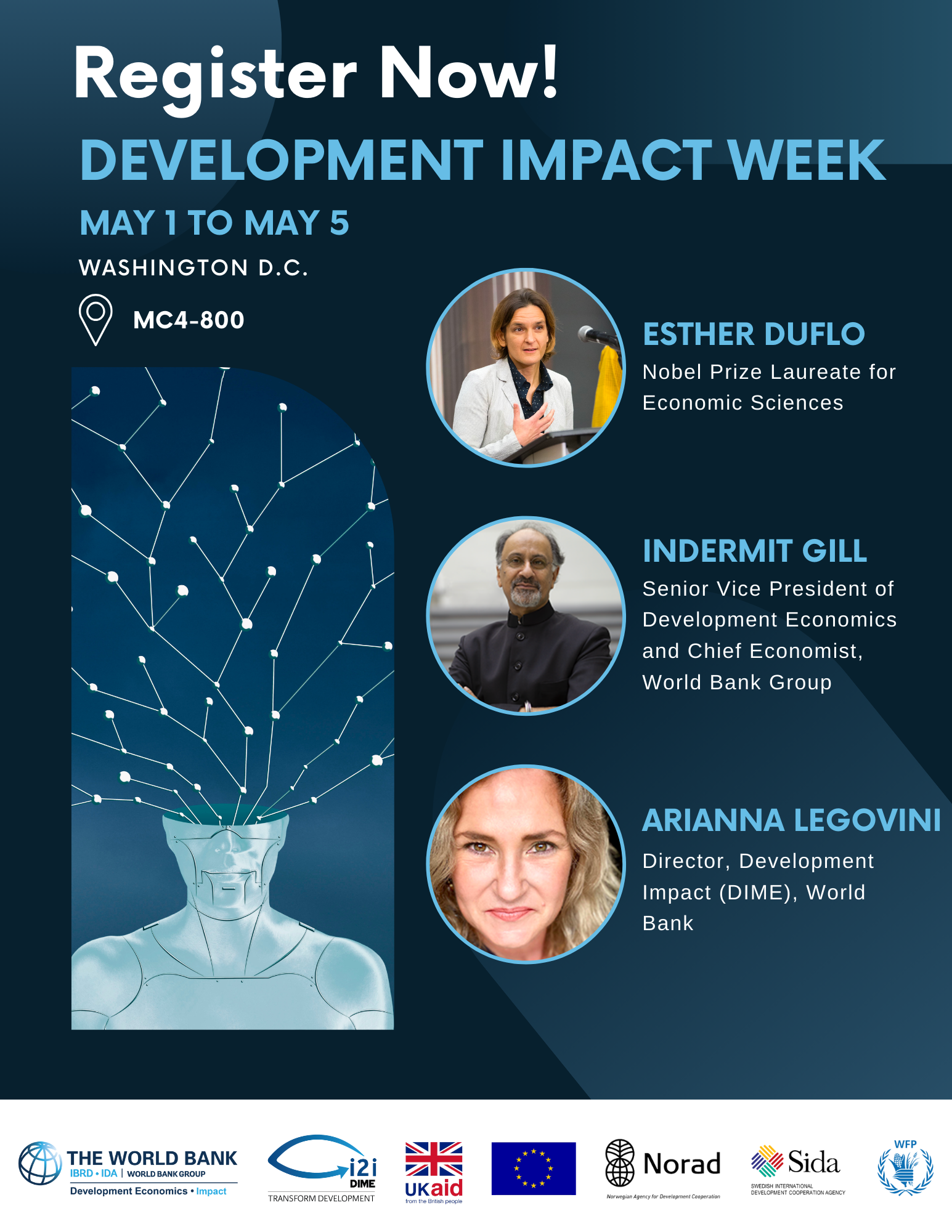 My first project after joining DIME was to work on the branding for Development Impact Week, a five-day flagship event showcasing DIME’s groundbreaking work. It featured Nobel Prize winner Esther Duflo and DIME Director Arianna Legovini. Each day was assigned a specific set of colors, which was reflected in the deliverables. The event was promoted on social media and broadcast live on the World Bank’s channels as well as the World Bank Live platform and totaled 250,000 views on X (Twitter).